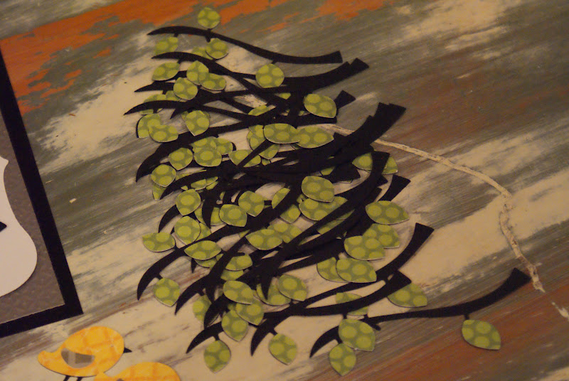 Then I cut out a black branch and polka dot leaves on my cricut.